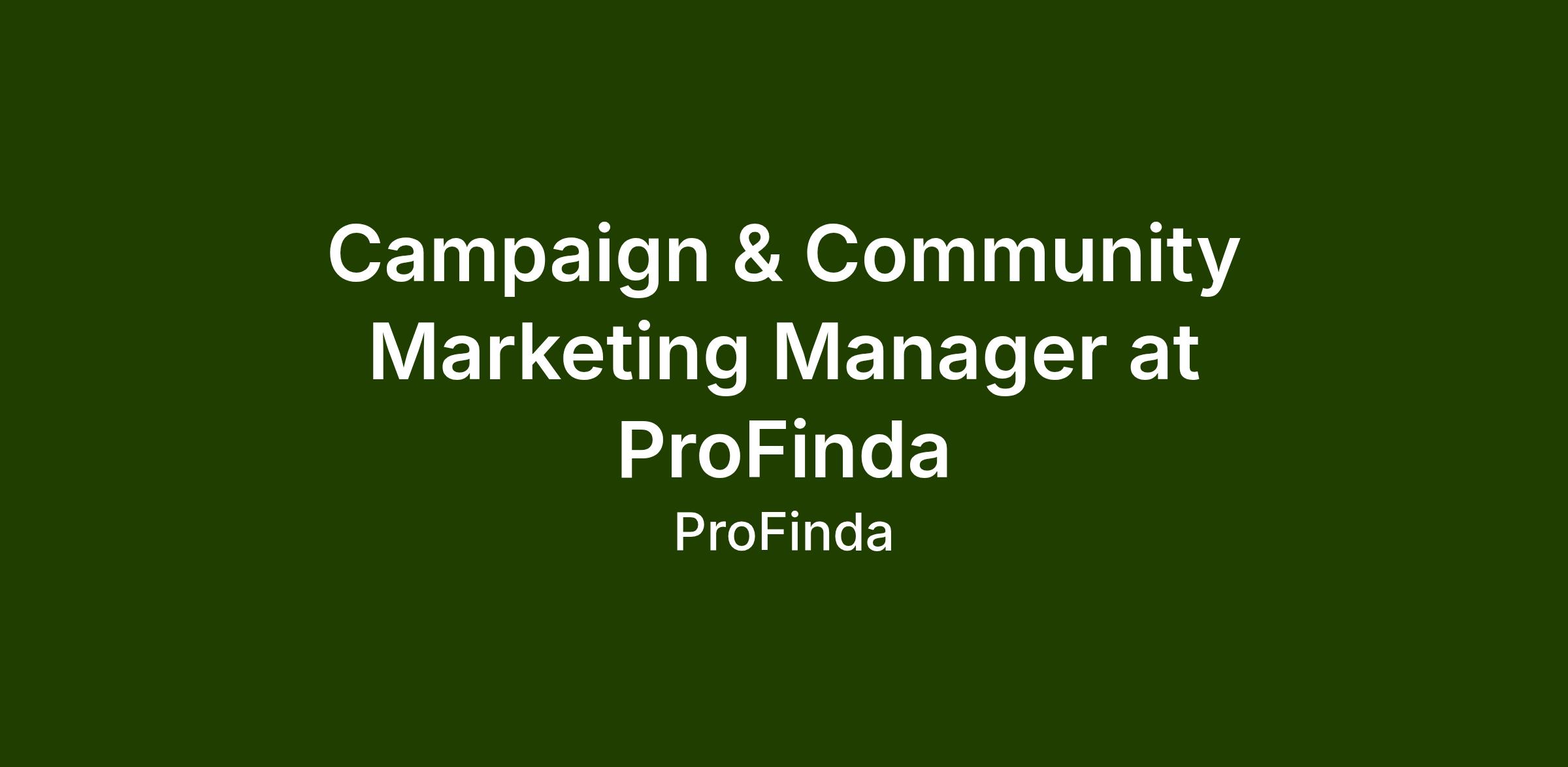 ProFinda is looking for a Campaign & Community Marketing Manager to join our team. In this role, you'll be instrumental in developing and executing our event and community strategy, helping us engage with our target audience and build a strong brand presence.