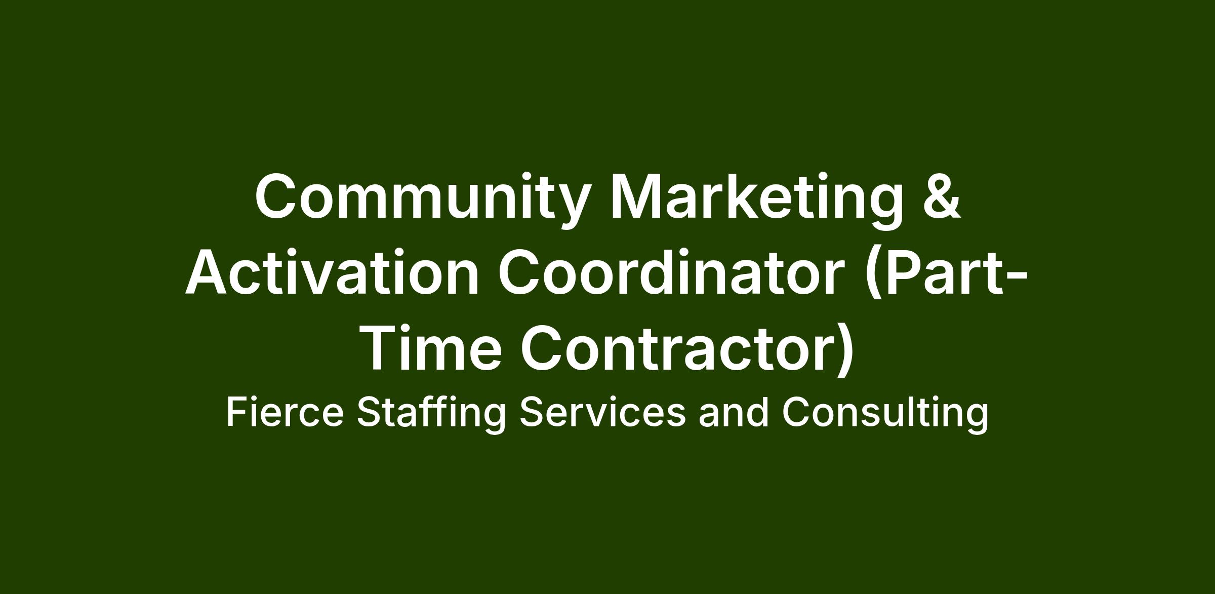 Community Marketing & Activation Coordinator (Part-Time Contractor)