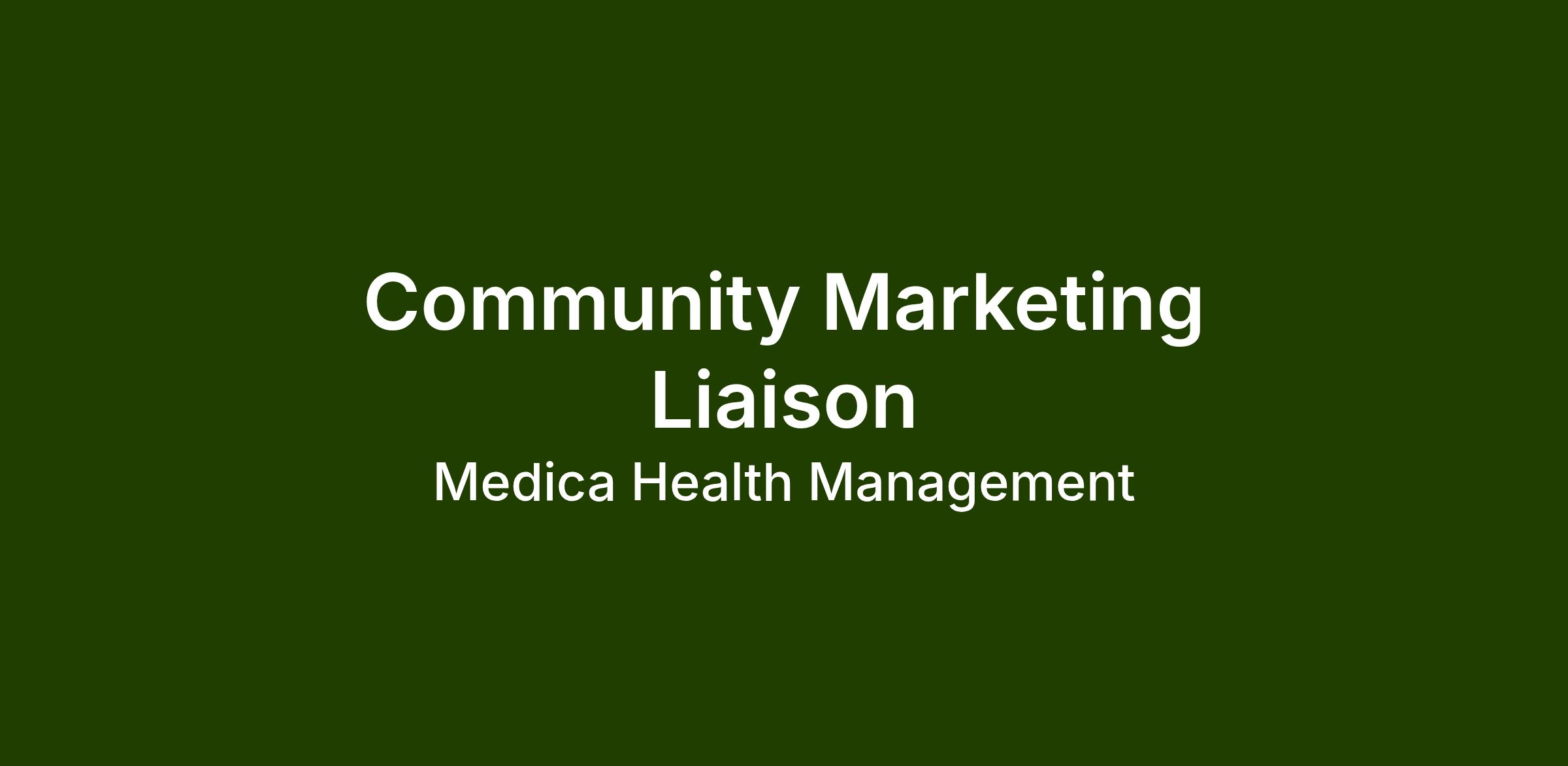The Community Marketing Liaison is responsible for interaction in the community and promoting company services and other duties as deemed necessary.