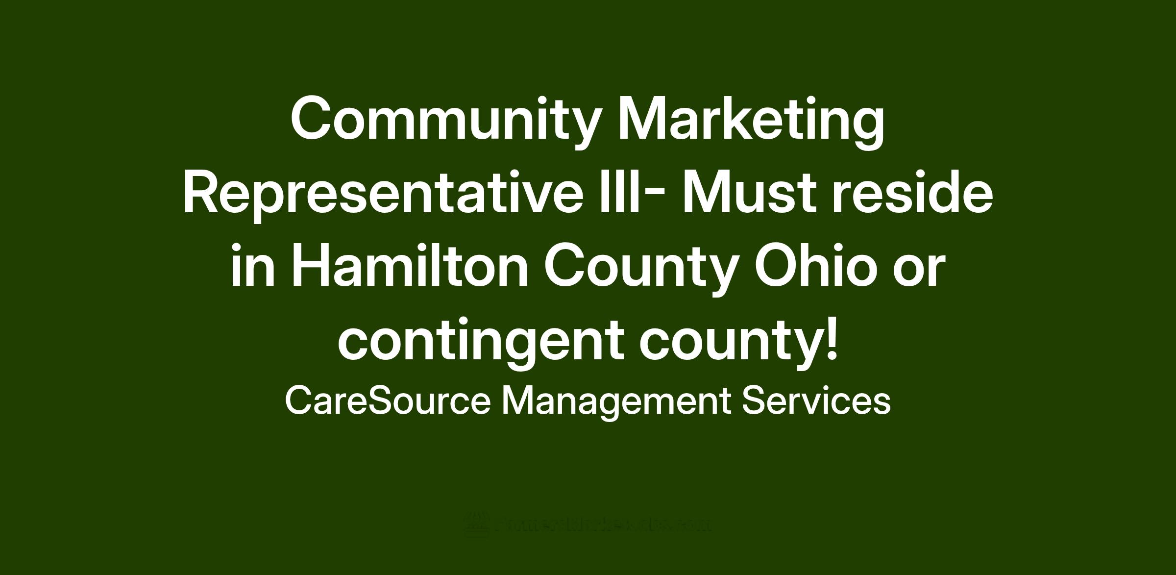 Community Marketing Representative III- Must reside in Hamilton County Ohio or contingent county!