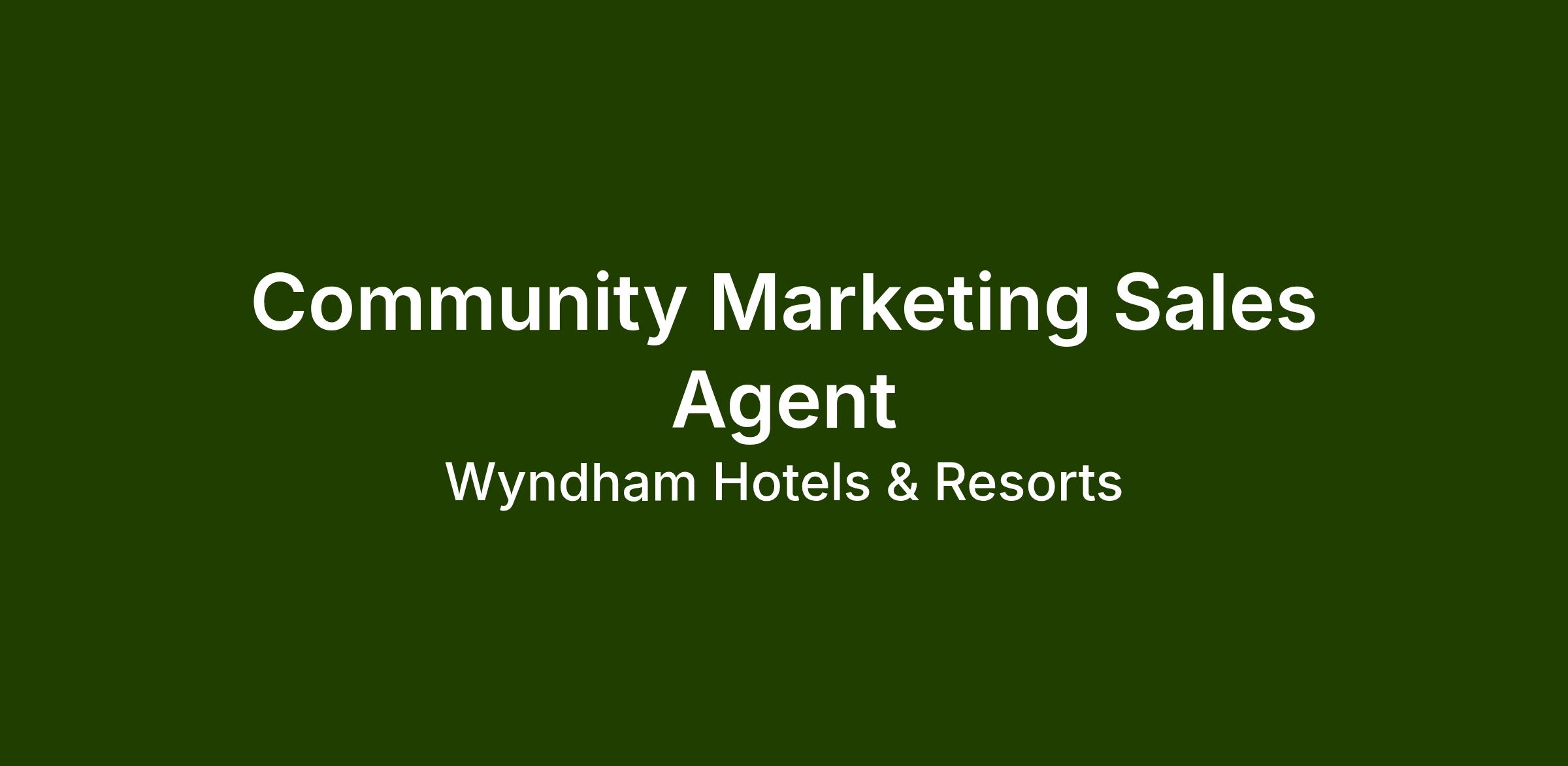 The Community Marketing Agent works with popular local attractions such as malls or theme parks and attends events such as trade shows, festivals, and conferences to connect with the public as a brand ambassador for Wyndham Destinations. In this sales-based role, engages in face-to-face conversations with prospective customers and share information about the vacation club experience. Invites and incentivizes guests to attend award-winning vacation ownership presentations.