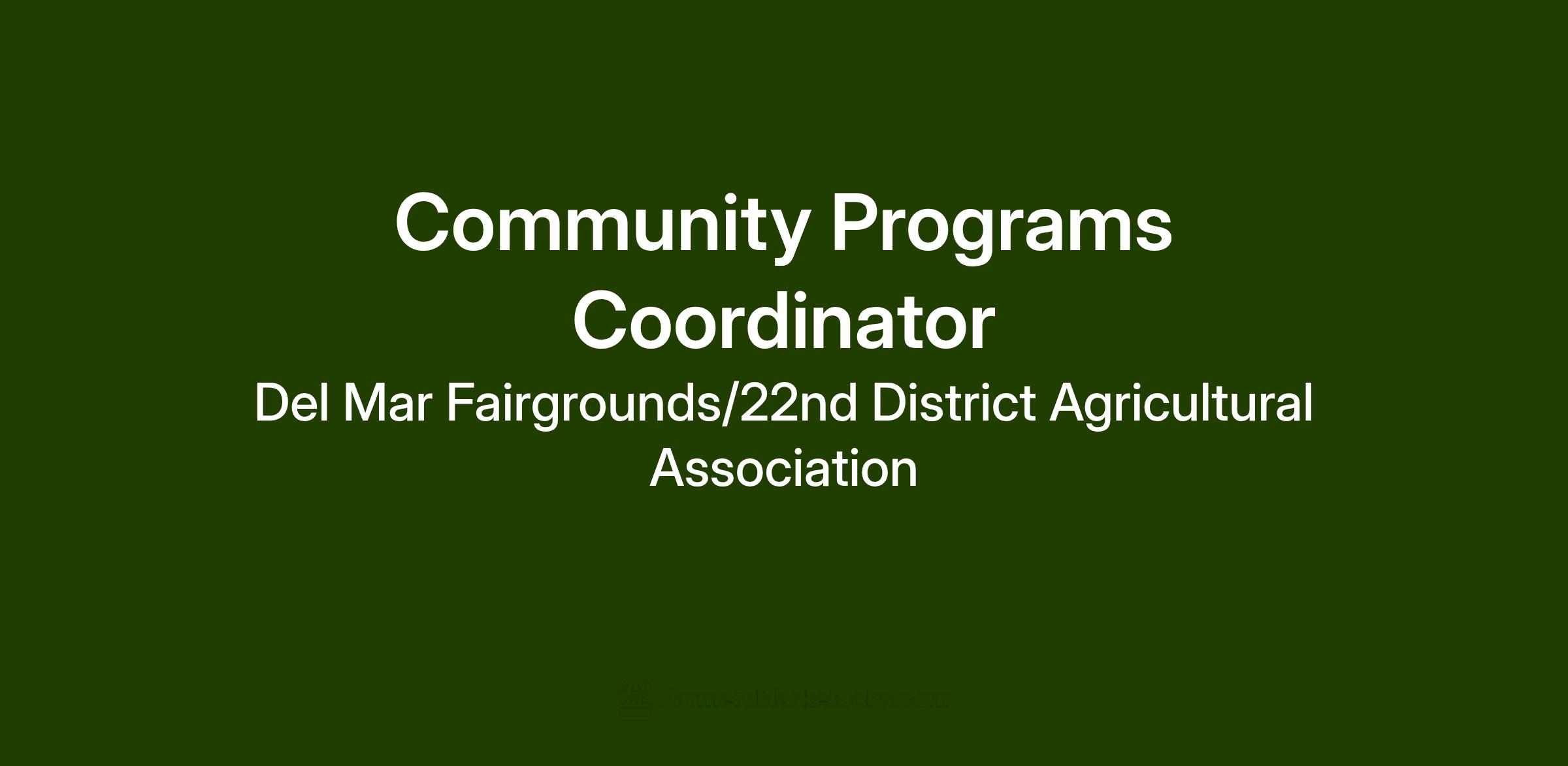 A position within the Agriculture, Arts and Education Department that reports to the department Manager, the Community Programs Coordinator plans, organizes, and implements Fair-time programs and exhibits involving scout troops, non-profit organizations, governmental entities, and public service clubs, and creates dynamic and educational experiences for Fair guests to enjoy during the San Diego County Fair.