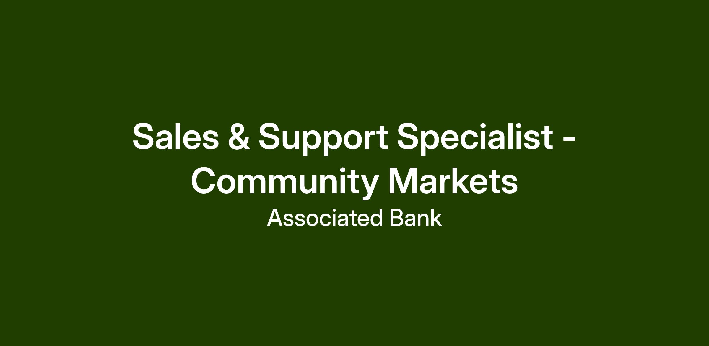 At Associated Bank, you’ll join a collaborative, client-focused culture that values integrity, development, and teamwork. We offer meaningful career growth, ongoing learning, and the opportunity to support businesses in your community.
