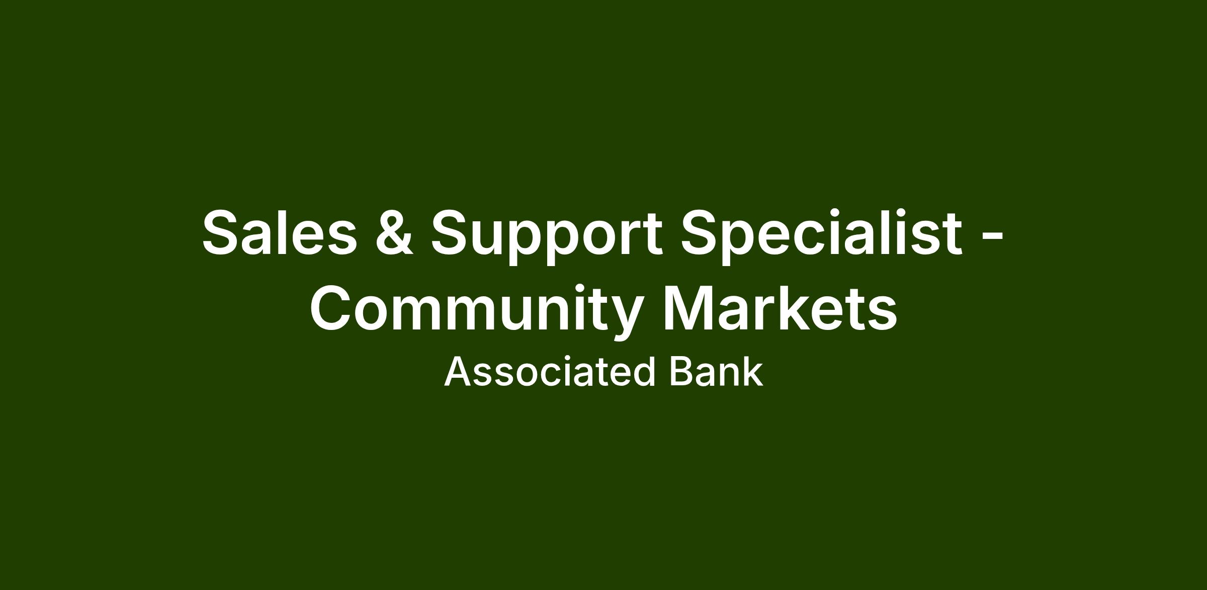 At Associated Bank, you’ll join a collaborative, client-focused culture that values integrity, development, and teamwork. We offer meaningful career growth, ongoing learning, and the opportunity to support businesses in your community.