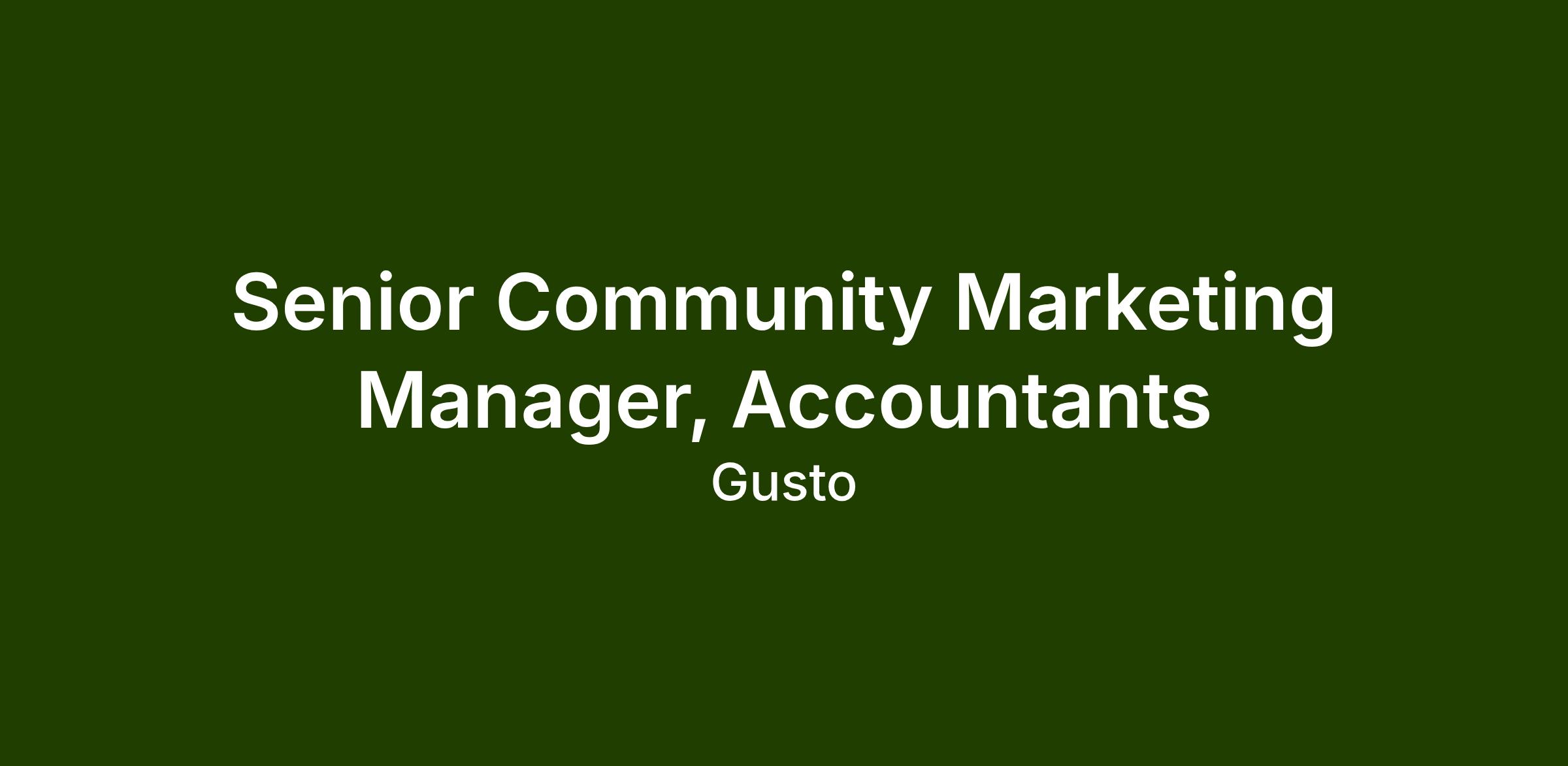 We're looking for a Senior Community Marketing Manager, Accountants to build and scale Gusto's brand presence and community with the accountant audience.
