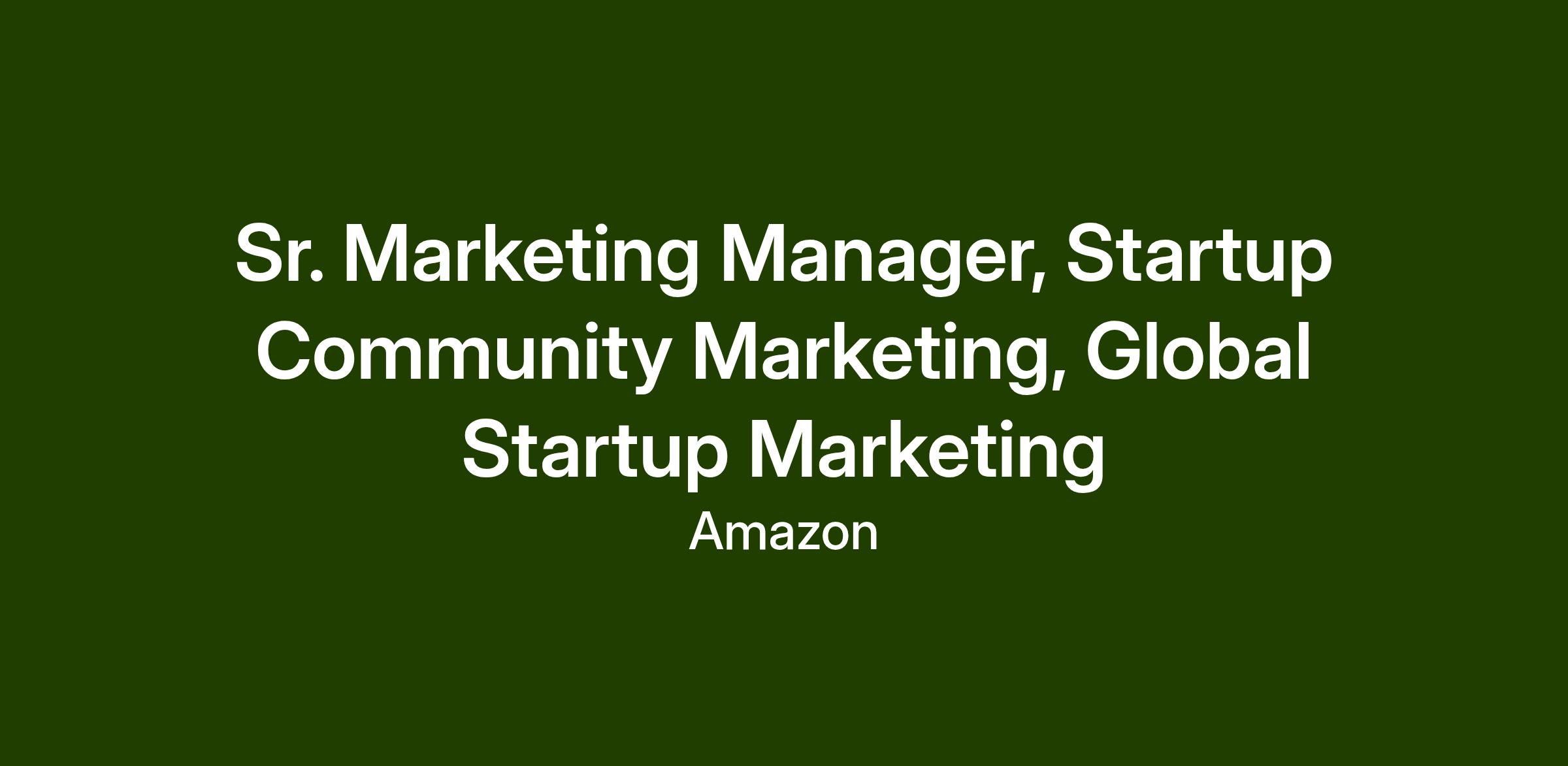 The startup organization at AWS comprises experts from across the global ecosystem, including former founders and CTOs, venture capitalists, angel investors, and mentors who upskill today's founders to navigate challenges and opportunities as they build their business, and our Startup Marketing team is where the magic happens. This high-performing team drives global initiatives that aid in supporting entrepreneurs and startups across their entire journey. For marketers who like to invent, there's no better place to build than on the AWS Startup Marketing team.